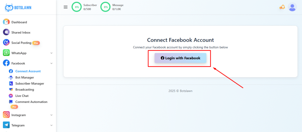 Step-by-Step Guide to Connect Facebook with BotSlawn #